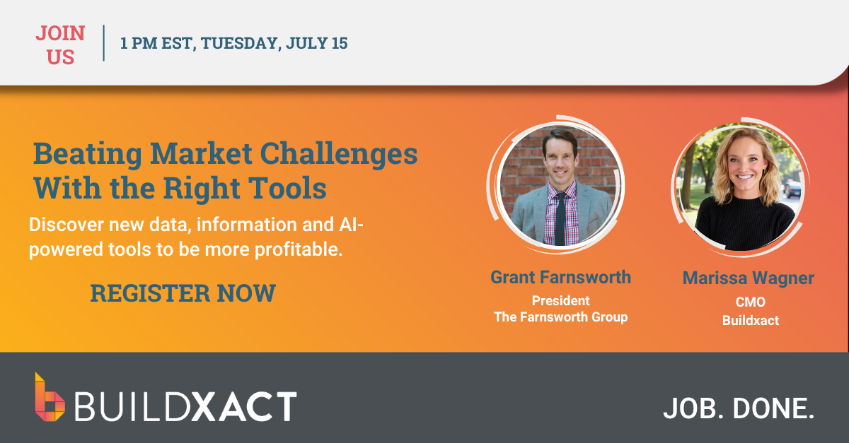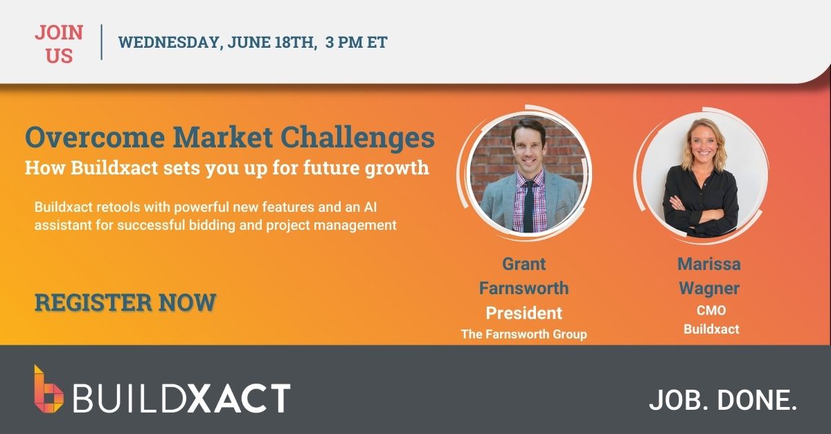 Listen and learn to this unique webinar as industry expert Grant Farnsworth explains how market dynamics are changing. Plus, he’ll share how to manage your business through those changes and how to leverage products and services that can help. Buildxact also will share how its platform is evolving so that you can immediately take advantage of ways to customize it to your changing business and the market around you.